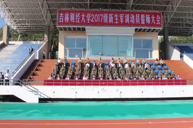 2017年9月11日早上8点,吉林财经大学新生动员誓师大会在田径场举行。大会在雄壮的军歌声中拉开了帷幕,校领导、教官代表及学生代表分别进行了讲话,鼓励大家在军训中能有吃苦耐劳,勇于拼搏的精神。新生军训动员大会在温暖的暖阳中拉开帷幕,在场的全体人员都庄严肃穆的对待这神圣的一刻。金秋九月,激情飞扬。高亢嘹亮的歌声,体现出每一个参加军训的同学的昂扬斗志。迎风飘扬的旗帜,也像在为你们赞叹