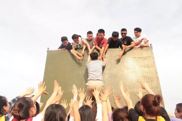 攀登毕业墙是拓展训练中最艰难的一关。4米高墙,要求所有成员不依赖任何工具翻越。队伍中的男生主动担起重任,搭建人梯,用自己的肩膀助力成员攀登。近六十名成员翻过,墙下的同学早已不堪重负,可没有人放弃,没有人抱怨,默默坚持到最后,他们的毅力和奉献精神,深深触动了在场的每位成员,大家团结一致,终于成功登上毕业墙,在出色完成任务的同时,团队成员间也建立了相互信任与深厚情谊。
