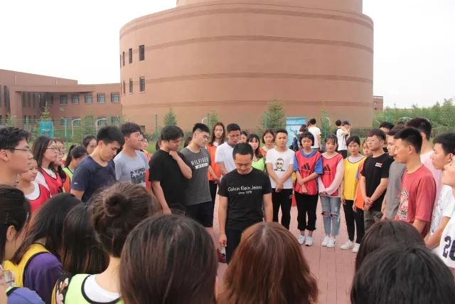 早上八点,全体成员在文体活动中心集合,与本次拓展教练见面,活动正式开始。教练向同学们介绍了训练目的与任务目标,并将同学们分成六个队伍,选出队长、秘书、旗手、安全官。各队讨论设计出队名、队歌、队徽及口号,进行团队展示。他们分别是星耀王者队、星火队、铁拳队及粉红豹队。