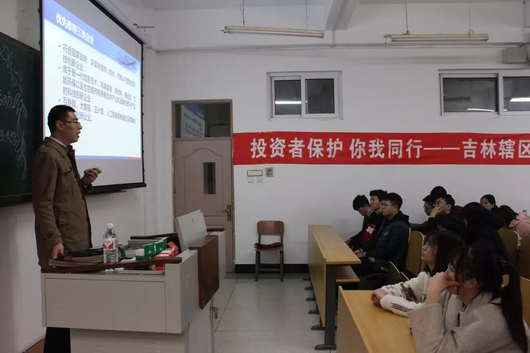 为宣传金融安全知识,提高大学生金融安全意识,我院于3月20日下午1:30在第一教学楼1122教室开展“国信证券金融安全知识宣讲会”活动,由国信证券财富中心的孙斌老师主讲。