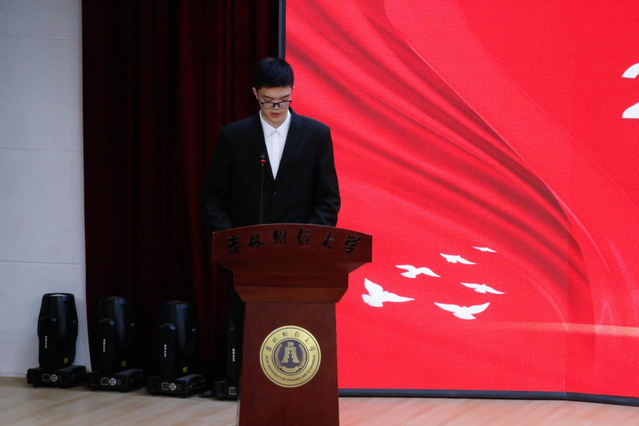 国际金融2302班彭奕程代表新生作出了对未来大学生活的规划:“在学习方面,养成良好的学习习惯;在组织方面,积极参加活动;在交往方面,我们要和同学友善相处,互帮互助。”同时,他向同学们提出积极进取,互相帮助,共同进步的希望,传达对和老师们以后相处的期待,发出对电子骰子 美好发展的祝愿。