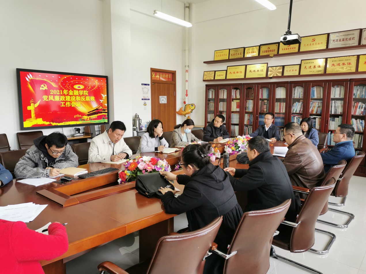 2021年4月14日下午,我院在综合楼459会议室召开了全面从严治党暨党风廉政建设工作会议。学院党委书记王利国,党委副书记、院长唐亚晖,党委副书记刘士明,副院长王丽颖、刘淼,学院全体教职工参加了会议。